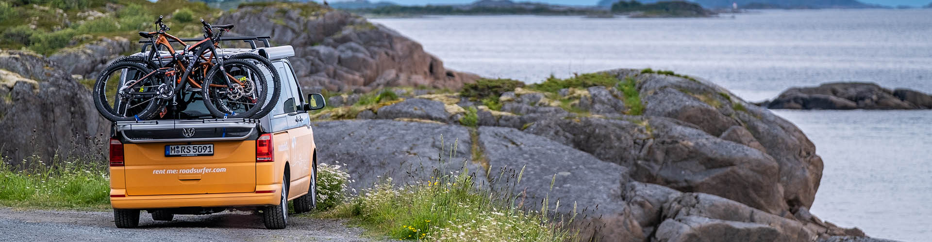 Erweitere deinen Radius beim nächsten Campingtrip doch einfach um eine Entdeckungstour auf 2 Rädern! Mit einem zubuchbaren Fahrradträger kannst du dein eigenes Moutainbike ganz easy mit auf deinen Roadtrip nehmen. Mit deinem Rad im Schlepptau bleibt dein heiß begehrter Stellplatz in der ersten Reihe sicher, während du einfach von vier, auf zwei Räder umsteigst und die Umgebung entdeckst. Wir zeigen dir, welche Trägersysteme dich bei unseren Modellen erwarten und was du beachten solltest, wenn dein Drahesel mit in den Urlaub kommt.