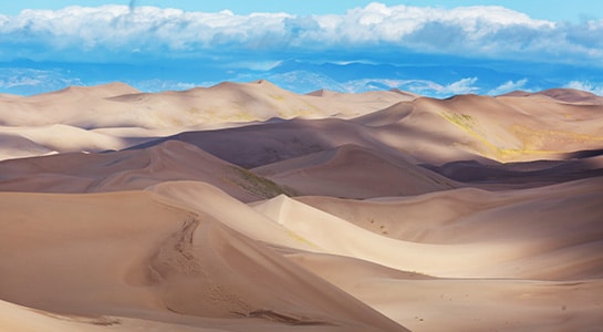 Der vorletzte Stopp auf deiner Colorado-Rundreise führt dich in die einzigartigen Great Sand Dunes. Die Dünen sind hier bis zu 230 Meter hoch und damit die höchsten Dünen der USA. Das ganze Gebiet schreit förmlich nach Abenteuer: Sandboarden, Sandschlitteln oder durch die Dünen wandern – die Möglichkeiten sind vielfältig und du wirst auf jeden Fall auf deine Kosten kommen.