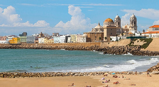 Von Sevilla geht es weiter nach Cádiz – eine der ältesten Städte Westeuropas. Die „Stadt des Lichts“ hält, macht ihrem Ruf alle Ehre: Strahlender Sonnenschein, helle Gassen und eine lebendige Atmosphäre werden dich langsam, aber sicher in den Bann der Stadt ziehen. Freu dich auf das Beste aus zwei Welten – buntes Stadtleben und entspannte Momente am Strand.