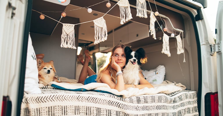 Und das Beste: In unseren Campern hast du genügend Stauraum, um alles ordentlich zu verstauen! So fühlt sich dein Hund unterwegs genauso wohl wie zu Hause.