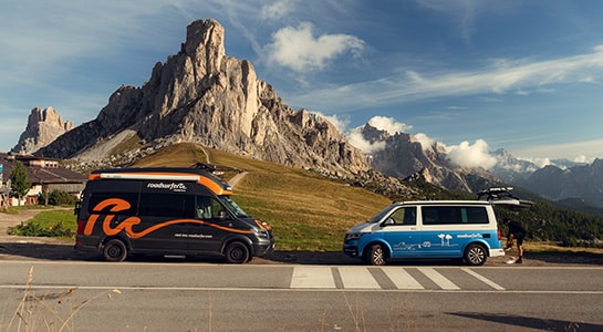 - Reservar con antelación: El norte de Italia ya no es un secreto. Por lo tanto, los mejores campings, especialmente en temporada alta, pueden llenarse rápidamente. Por ello, merece la pena reservar tu lugar con antelación. Nuestra app gratuita roadsurfer spots te ayudará a encontrar y reservar fácilmente lugares de acampada y estacionamiento, además de planificar rutas y buscar inspiración para tu viaje.