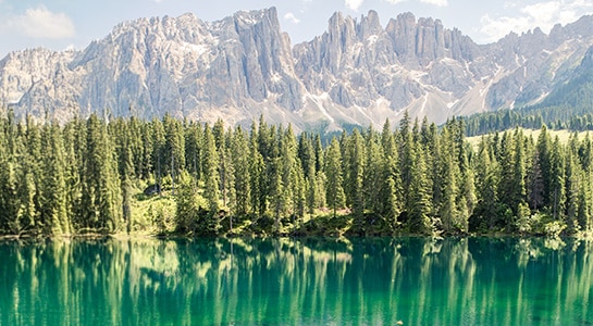 - Lago di Carezza (Karersee): pequeño lago glacial, famoso por sus aguas que cambian de color y la leyenda de la ninfa Ondina.