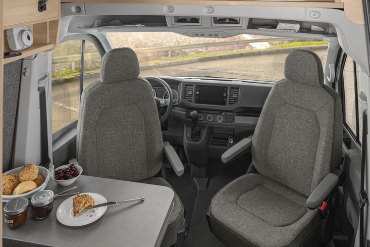 Family Finca är av goda skäl en favorit bland andra roadsurfare. Det fasta, höga taket ger en behaglig takhöjd och en generös känsla av rymd – perfekt för längre resor. Interiören hålls behagligt varm även på vintern, eftersom det stabila inomhusklimatet och den extra tillsatsvärmen ger en behaglig värme. Panelvan-husbilen erbjuder 2+2 sovplatser så att du kan ta med dig alla dina nära och kära.