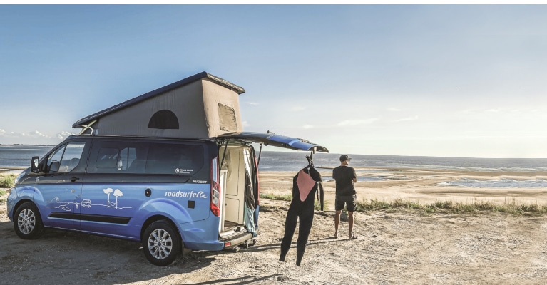 When you hire your campervan or motorhome from our roadsurfer stations in Amsterdam and Rotterdam, you’ll find a wide range of vehicles suited to every need. There are campers for cosy couple getaways, for memory-making holidays with your closest friends, and for bringing the kids along for their first taste of travel adventure. All vehicle options are dog-friendly and are either pop-top or high-roofed. The included camping furniture allows you to take life outside, and there are plenty of optional extras to book, including a bicycle carrier that will be perfect for The Netherlands!